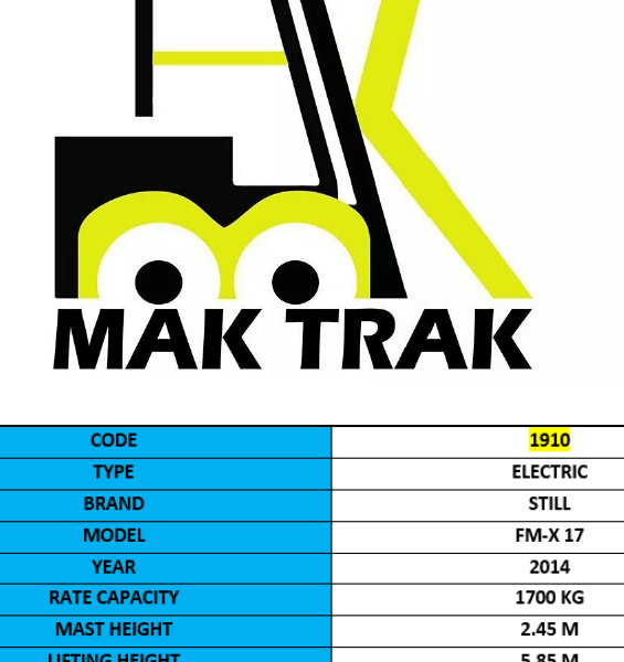 We specialize in the sale, purchase, and rental of all types of forklifts, including electric, diesel, and gas models from brands such as Caterpillar, Komatsu, Toyota, TCM, and Still. Our forklifts have lifting capacities ranging from 1 ton to 15 tons and heights from 3 meters to 12 meters.